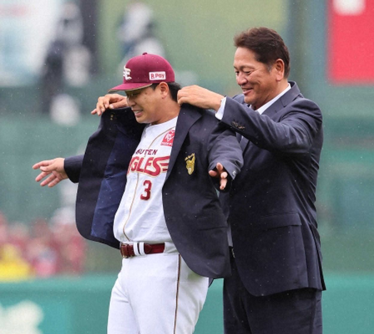 | 【楽天】2000安打達成の浅村栄斗、大魔神・佐々木主浩さんから名球会ブレザーを授与 …天―阪神(楽天モバイルパーク宮城) 通算2000安打を達成した楽天の浅村栄斗内野手が14日、試合前に日本プロ野球名球会のブレザー授与式に参加し、宮城… (出典:) |