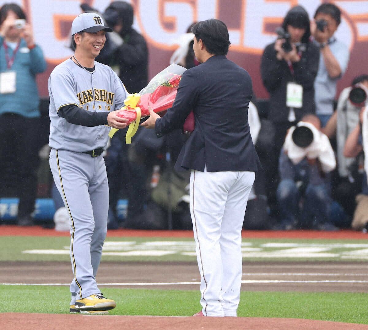 | 楽天・浅村栄斗「より一層身が引き締まる」2000安打達成で大魔神から名球会ブレザーを授与 阪神・藤川監督から花束 …天―阪神(楽天モバイルパーク宮城) 通算2000安打を達成した楽天の浅村栄斗内野手が14日、試合前に日本プロ野球名球会のブレザー授与式に参加し、宮城… (出典:) |