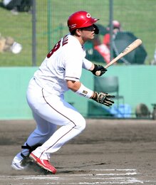 13日に行われたみやざきフェニックス・リーグ、ロッテ戦。広島の仲田侑仁内野手(20)が初回、詰まりながらもセンター前へ運ぶ2点適時打。勝負強さを発揮し、今リーグでチームトップの4打点目をマークした。